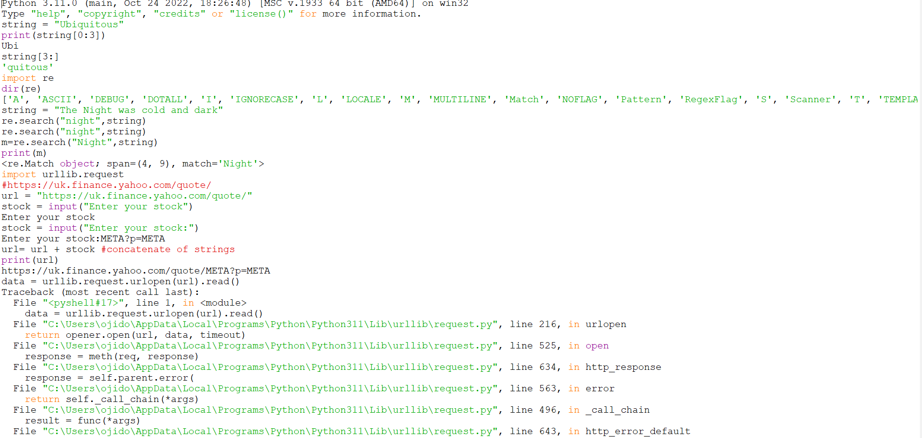 Package Installation: Code snippets demonstrate the installation process for essential libraries like Beautiful Soup, NumPy, Pandas, and Matplotlib using the command prompt on a local PC.